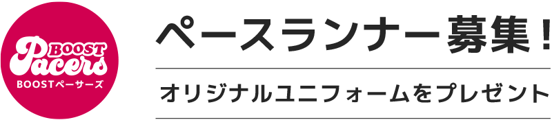 『BOOSTペーサーズ』は、BOOST主催のランニングイベントにてペーサーを行うランニングチームです!「ランナーに走る場を提供し続ける」を合言葉にマラソン大会を開催し続けてきたBOOST。ランナーの目標達成の為にペーサーチームを立ち上げ、ランナーをさらにサポートしていきます! ペースランナーは1キロ4分ペースから1キロ6分ペースまでの間を10秒刻みで配置できるよう調整いたします。